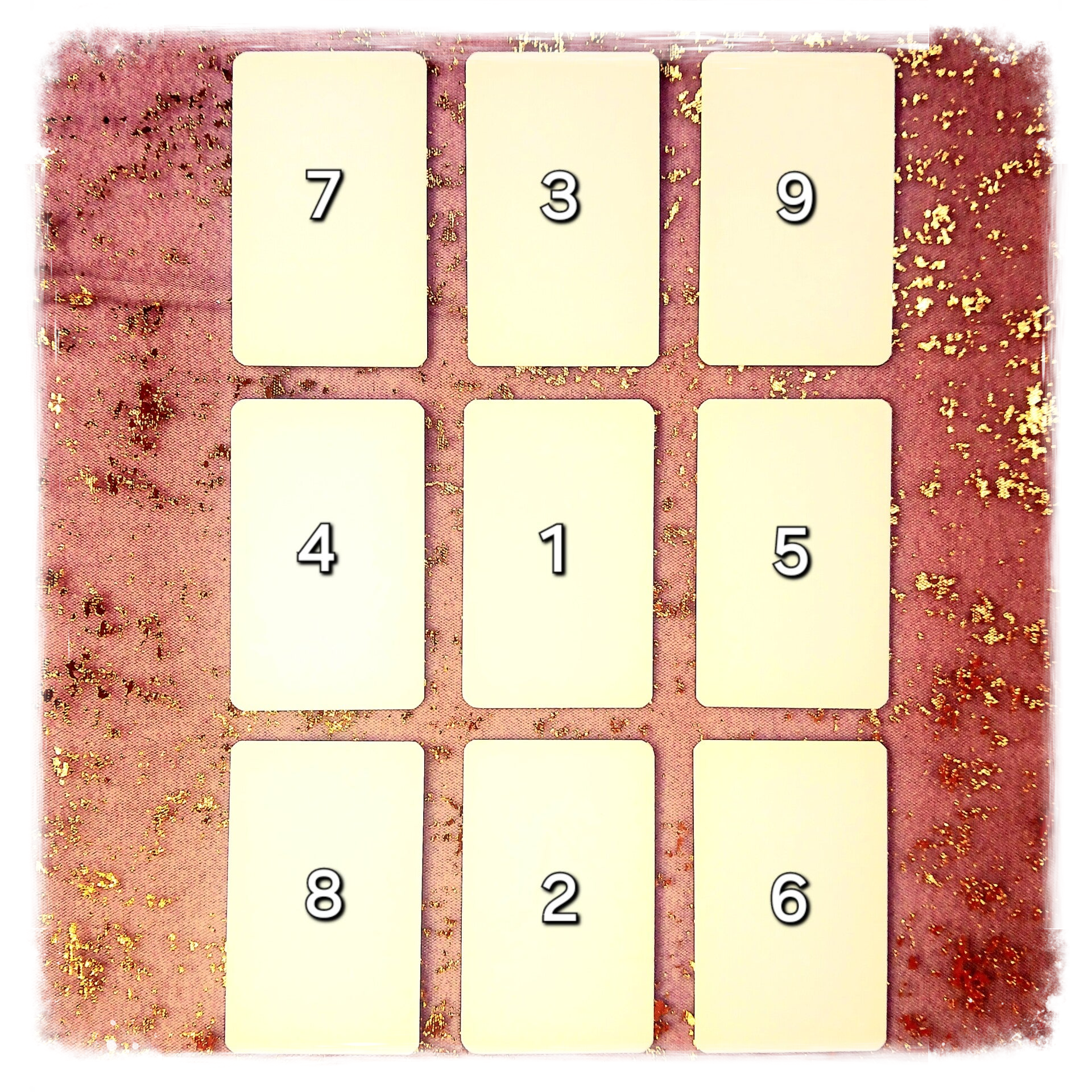 Le Loshu est un outil issu du Feng-Shui, une des branches de la Médecine Chinoise. il se présente comme un quadrillage et se compose de 9 zones, qui vont représenter différents domaines de notre vie. s'il est en général utilisé pour l'habitat, nous pouvons fort bien l'adapter à nous-même. ce tirage se présentera donc en 9 à 11 cartes.